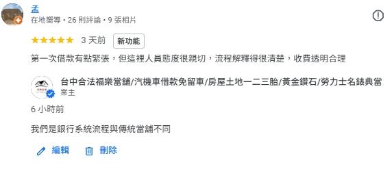 福樂當舖在台中南屯區,是一間依法設立、合法經營的當舖。我們服務的客戶主要來自台中南屯。不管是想透過汽車或機車作為擔保,或者是有物品想要辦理借款,來這邊我們都可以協助你,幫你尋找適合的處理方式。現在當舖的服務非常多元,汽車與機車也成為一種常見的借款方式。對於不同的擔保品相對來說也會有不同的估值標準。例如汽車的車齡、品牌、市場行情等等,都會影響實際能借到的金額。機車也是同樣的道理,若車況維持良好、登記清楚,基本上都可以來辦理借款。當然,我們也接受其他質借項目,如果你想要詢問是否可以辦理借款,我們非常歡迎你來到南屯現場或先透過電話、LINE的方式進行初步諮詢。